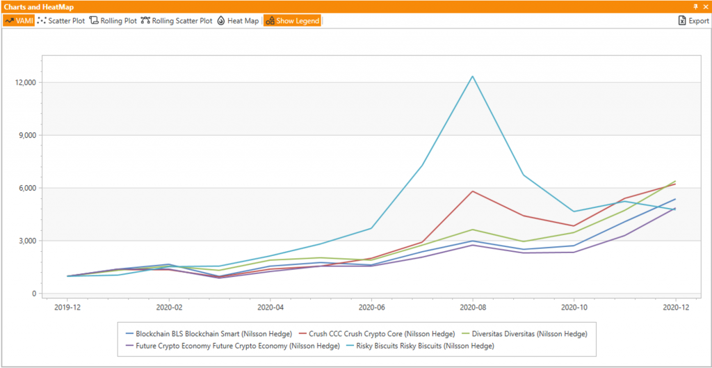 In April last year we created an index-like portfolio of major cryptocurrencies; it was constructed using the five coins with the highest market cap each year (measured by year-end) and then held for one year). This approach has shown interesting results over more than seven years of analysis, basically doubling the return of Bitcoin alone and outperforming equities.