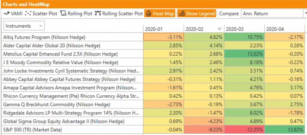 We repeat our filtering to find CTAs that are performing well YTD through April by using Nilsson Hedge database.